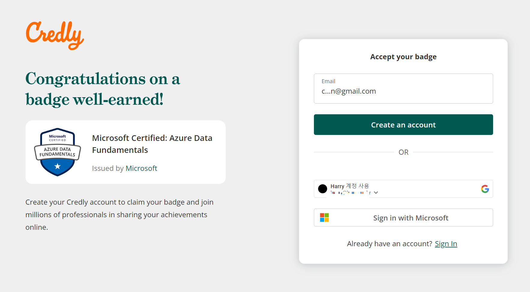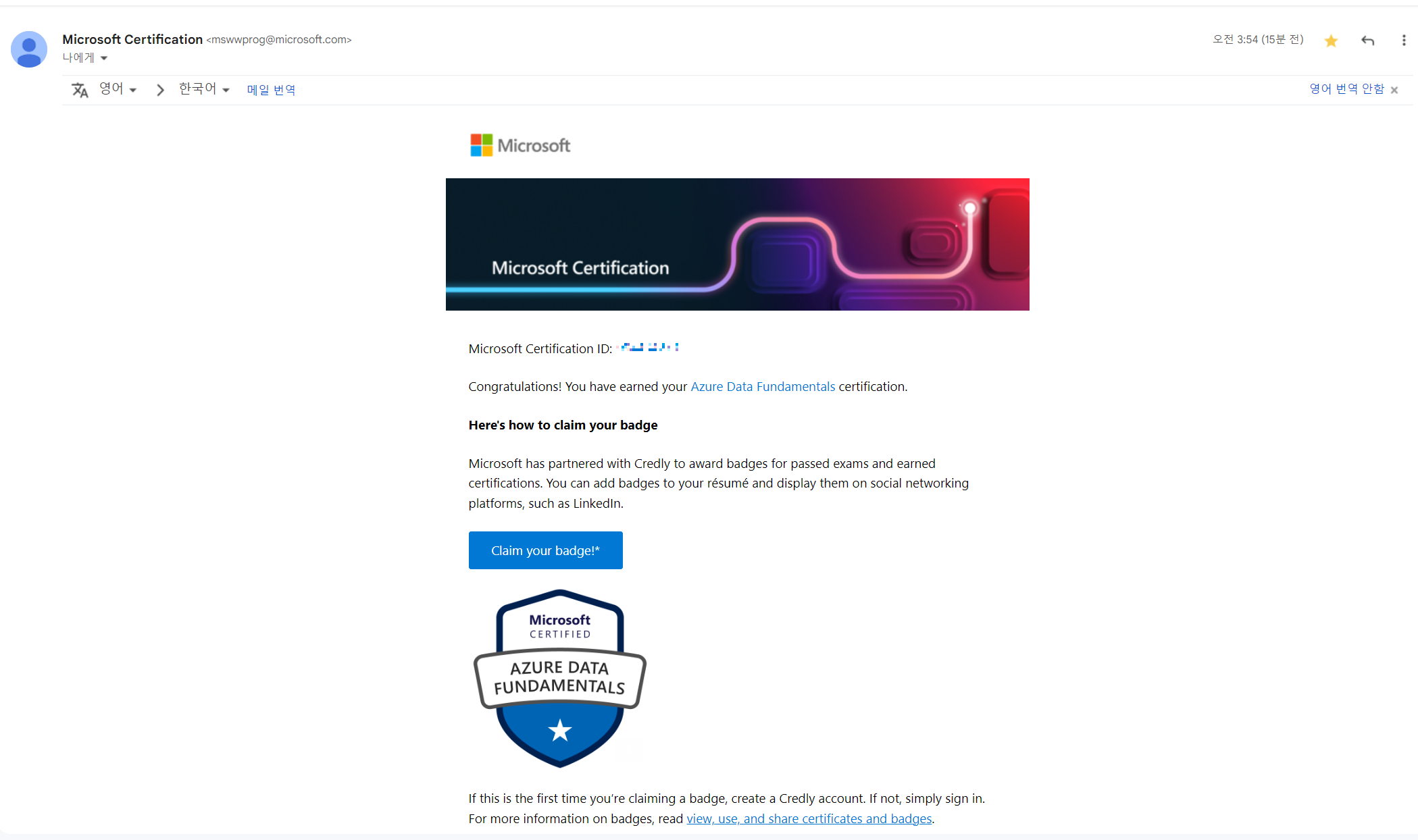 합격 후 30분 정도 지나면 메일이 오며, 2학기 클라우드 컴퓨팅 실습을 하며 만든 계정과 연동시켜 뱃지를 달고 링띤에도 코세라 수료증처럼 업데이트를 할 수 있다.
